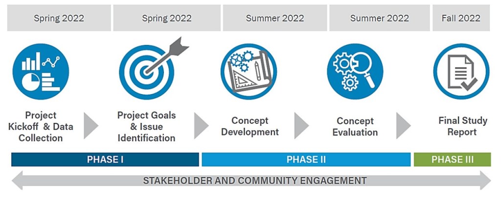 With so many competing needs, safety issues have arisen over the last ten years. A process rooted in quantitative analysis and community input will assist with understanding the mobility relationships and creative solutions to improve the safety, comfort, and reliability of Stadium Road for those walking, bicycling, taking transit, and driving.